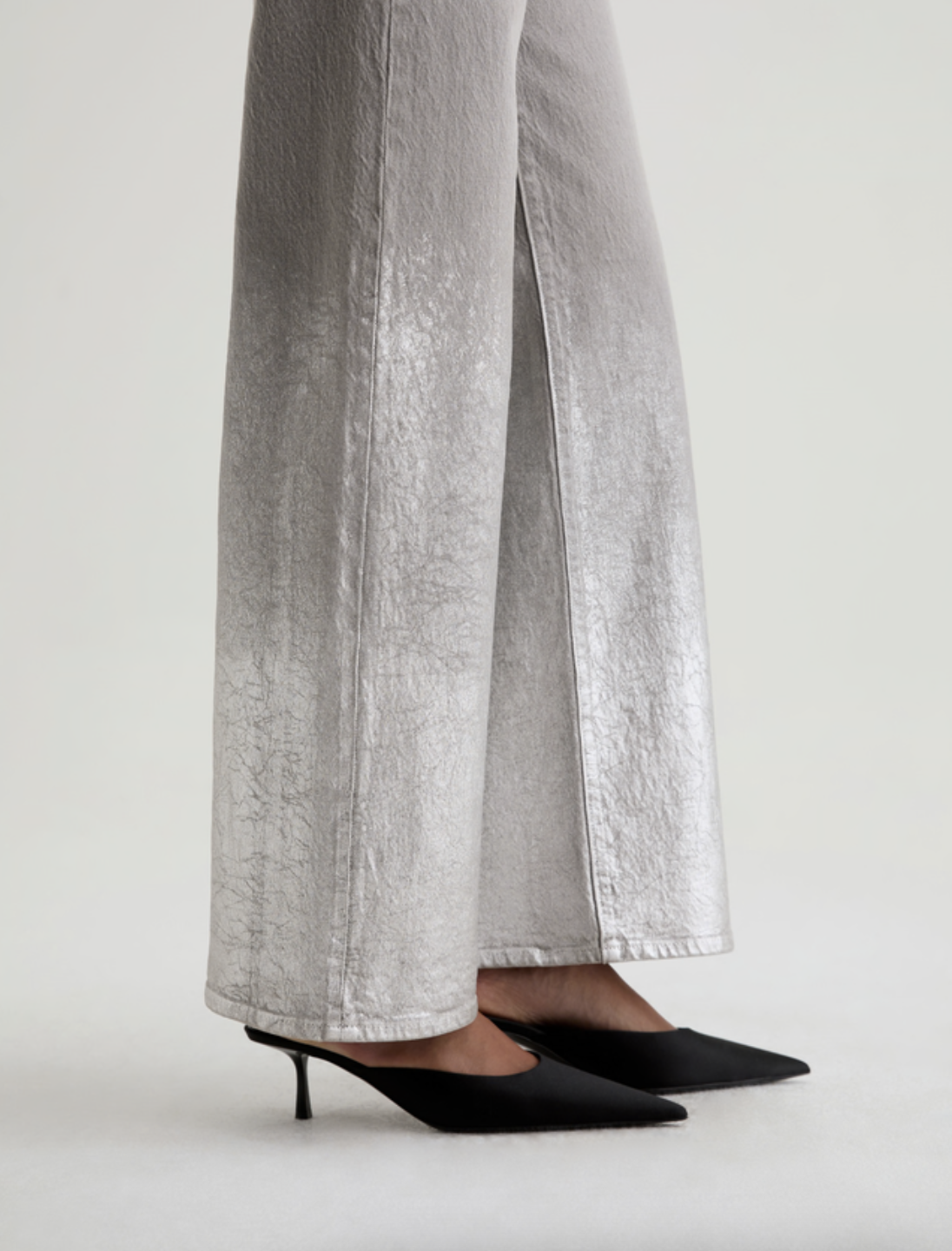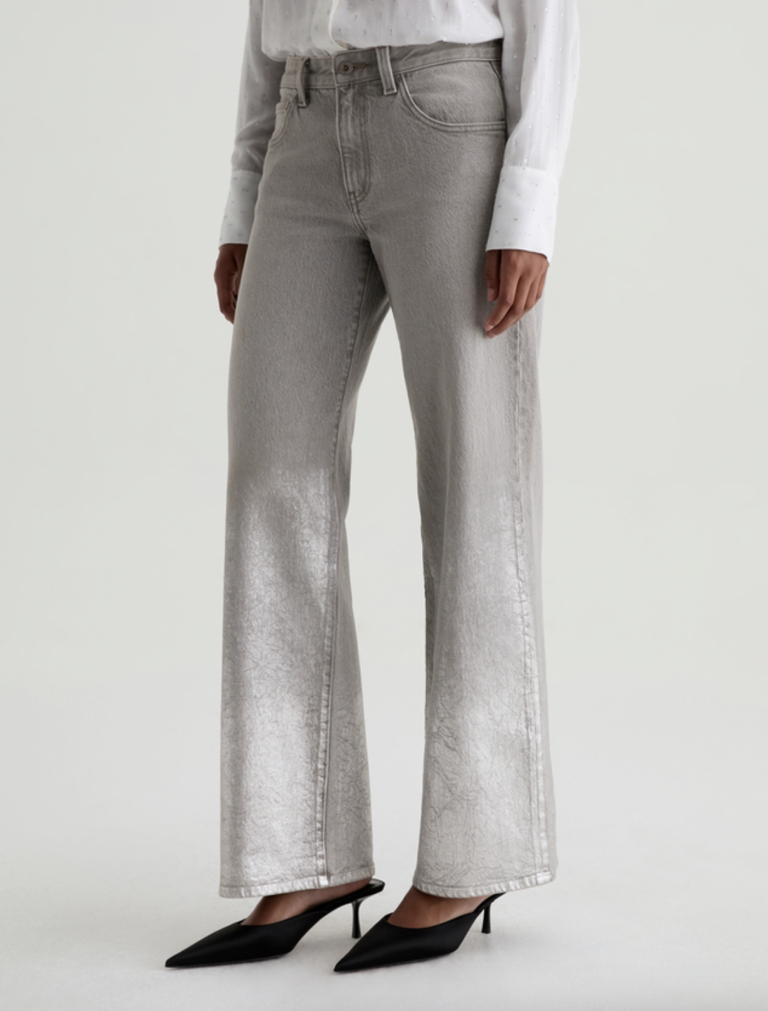 Designed in our light stoney grey wash, Silver Myst, with shimmery ombré foiled detailing that smoothly transitions from hem to knee.