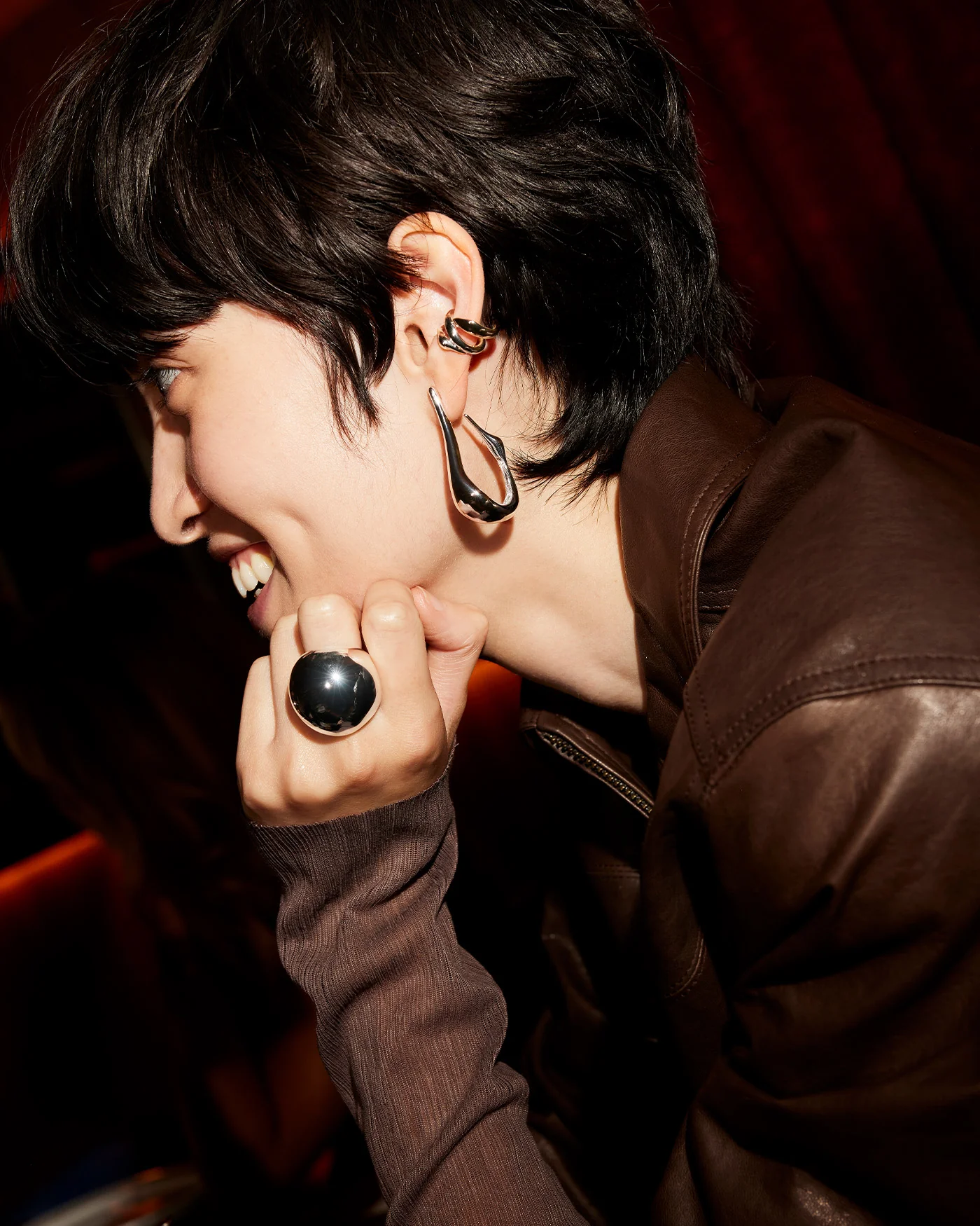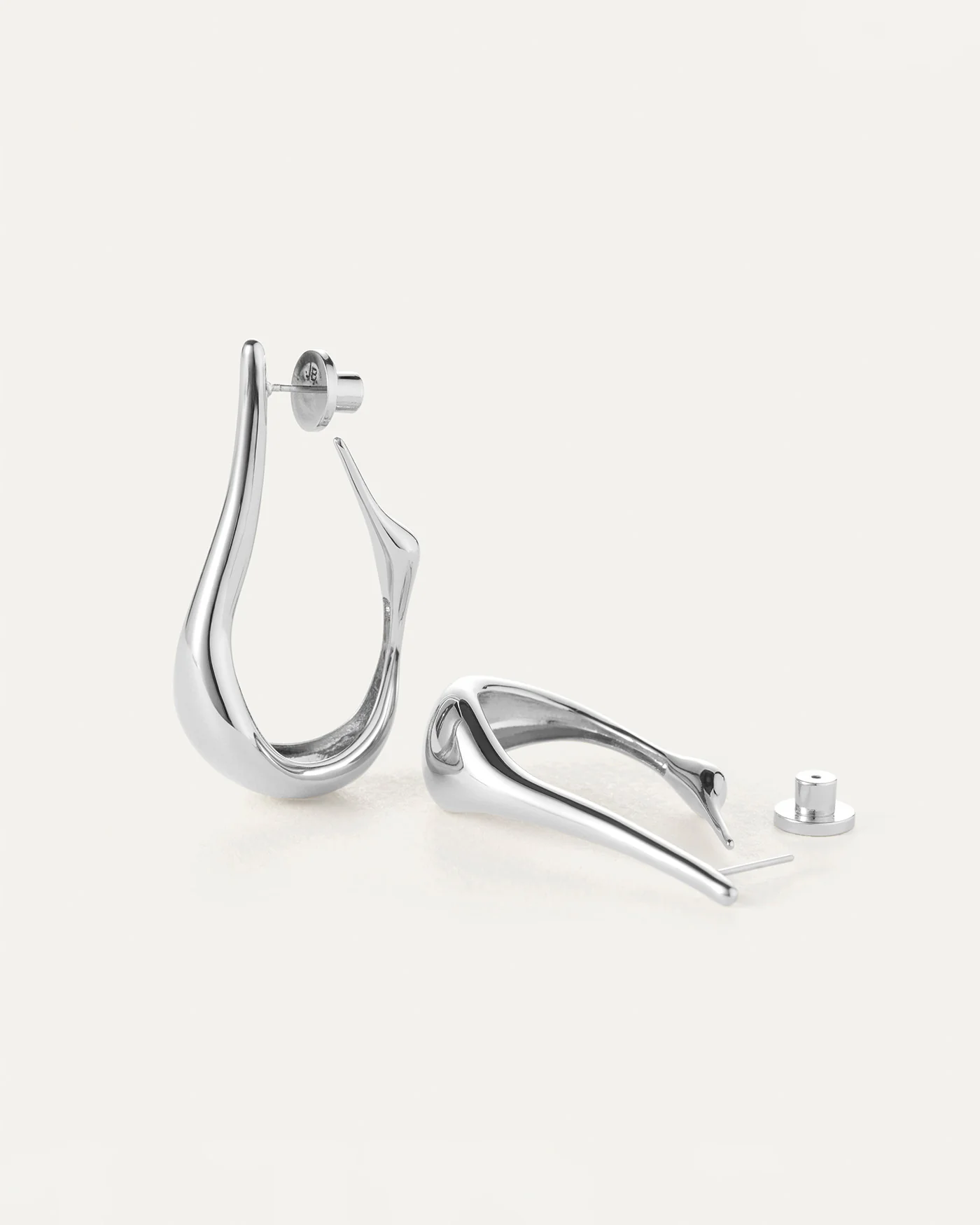 The theatrical beauty of an egret bird is captured in this pair of elevated, medium hoop earrings.