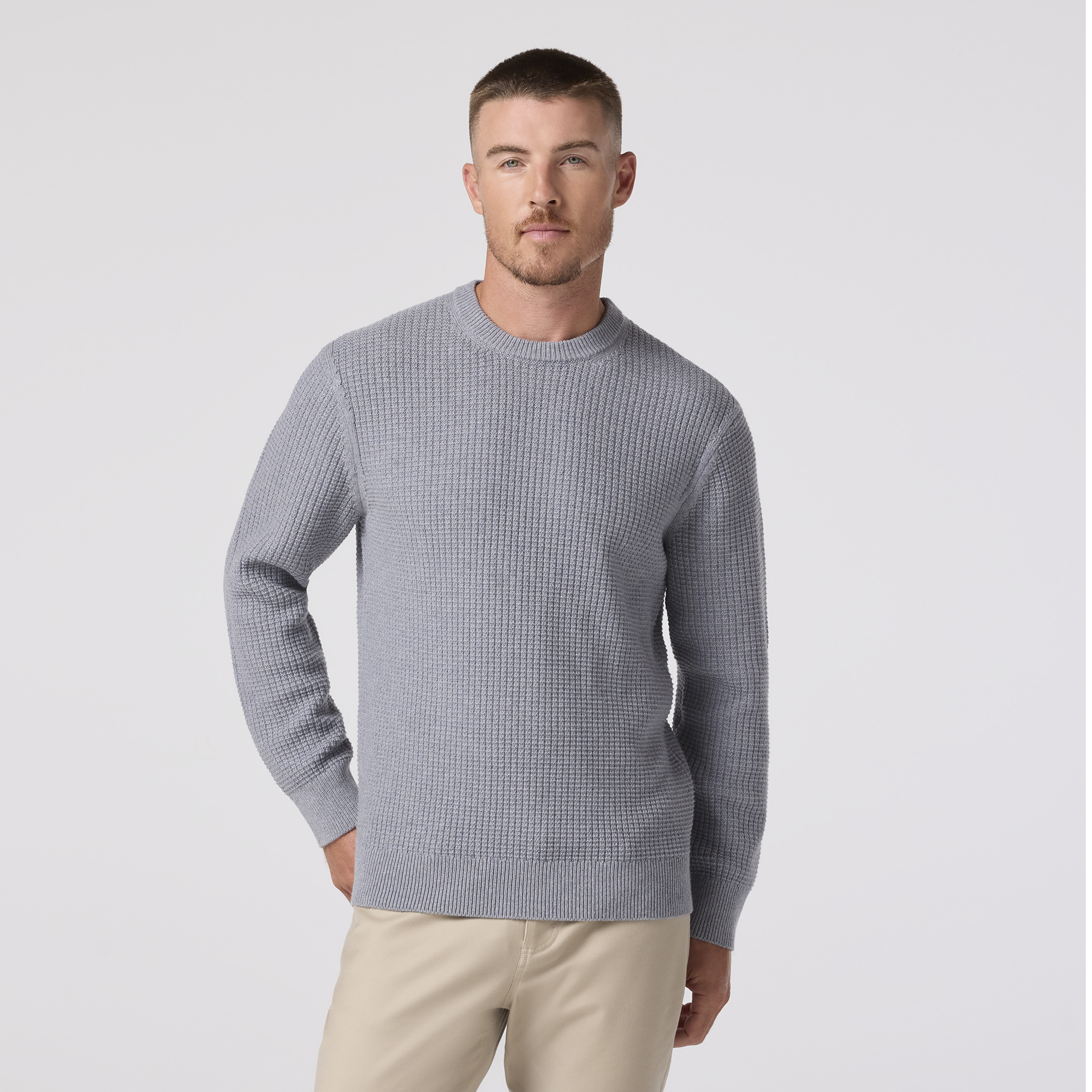 The Crawford Crewneck is a midweight waffle-stitch sweater in a soft cotton and Extra Fine Merino Wool blend. Warm, breathable, and textured with subtle structure for casual days, cooler temps, and put-together layering.