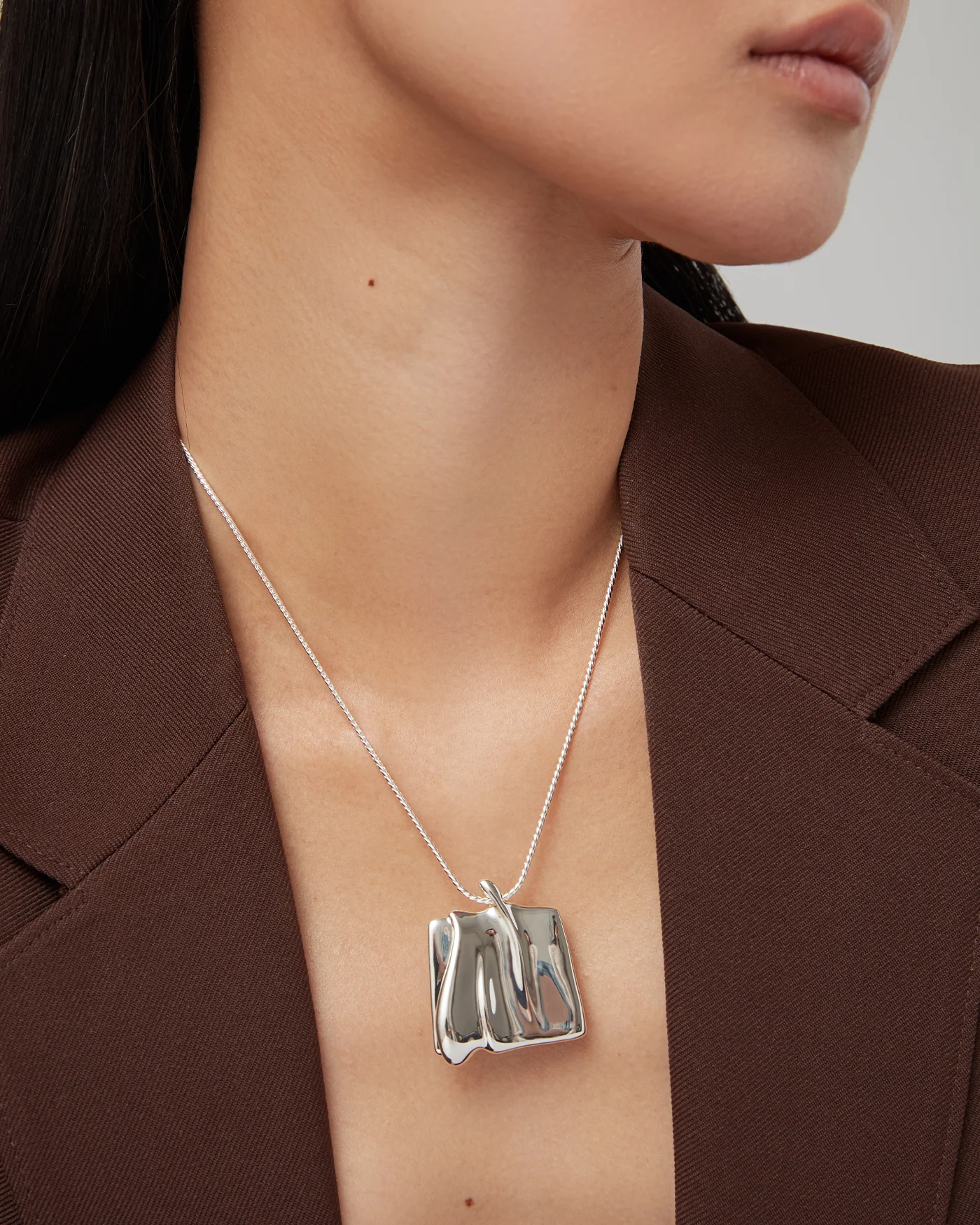 Mirroring a sand dune shaped by natural winds, this large organic square pendant glides along a gold chain. This design includes a shortening ring, making it easy to adjust and wear at 18" or 20".