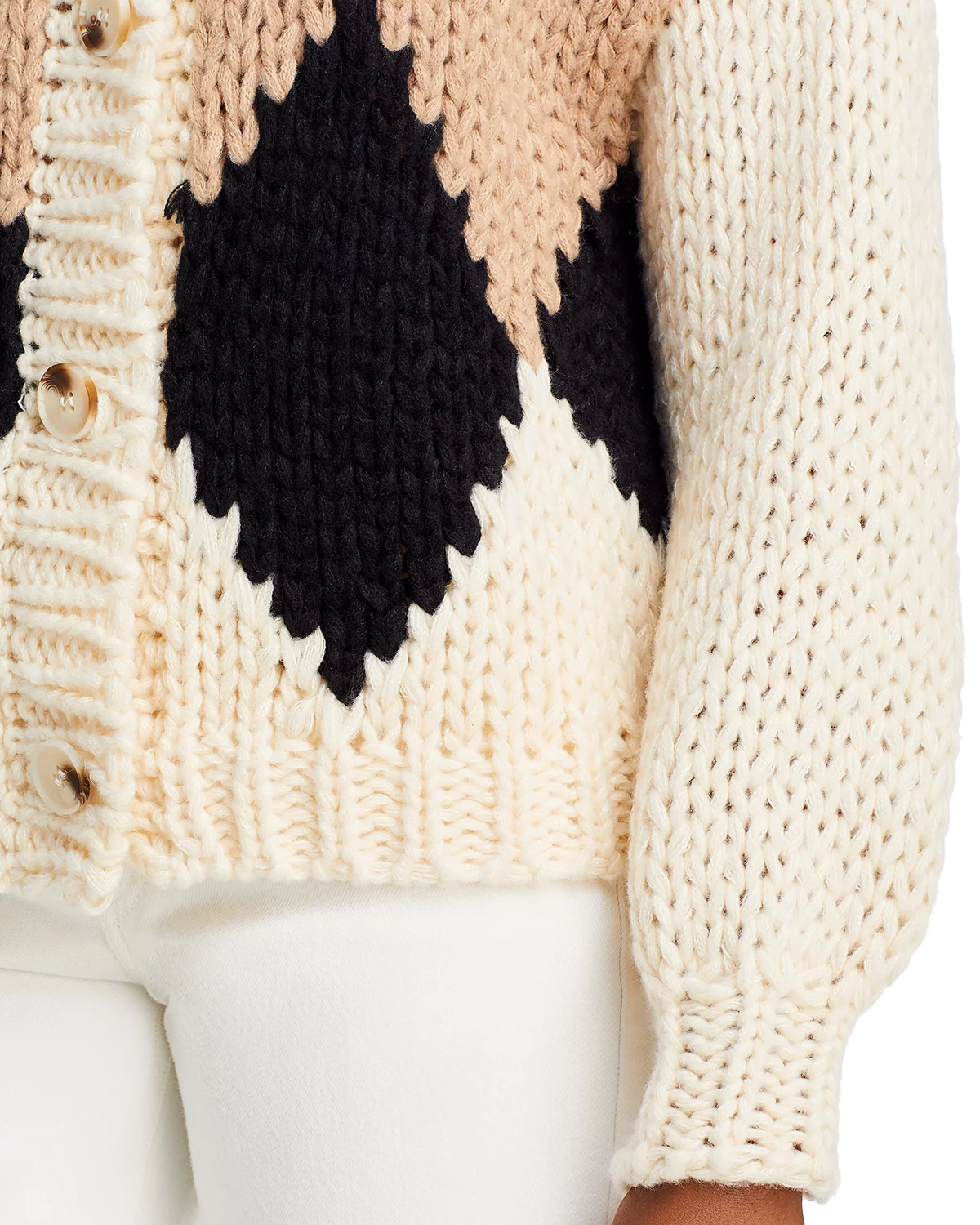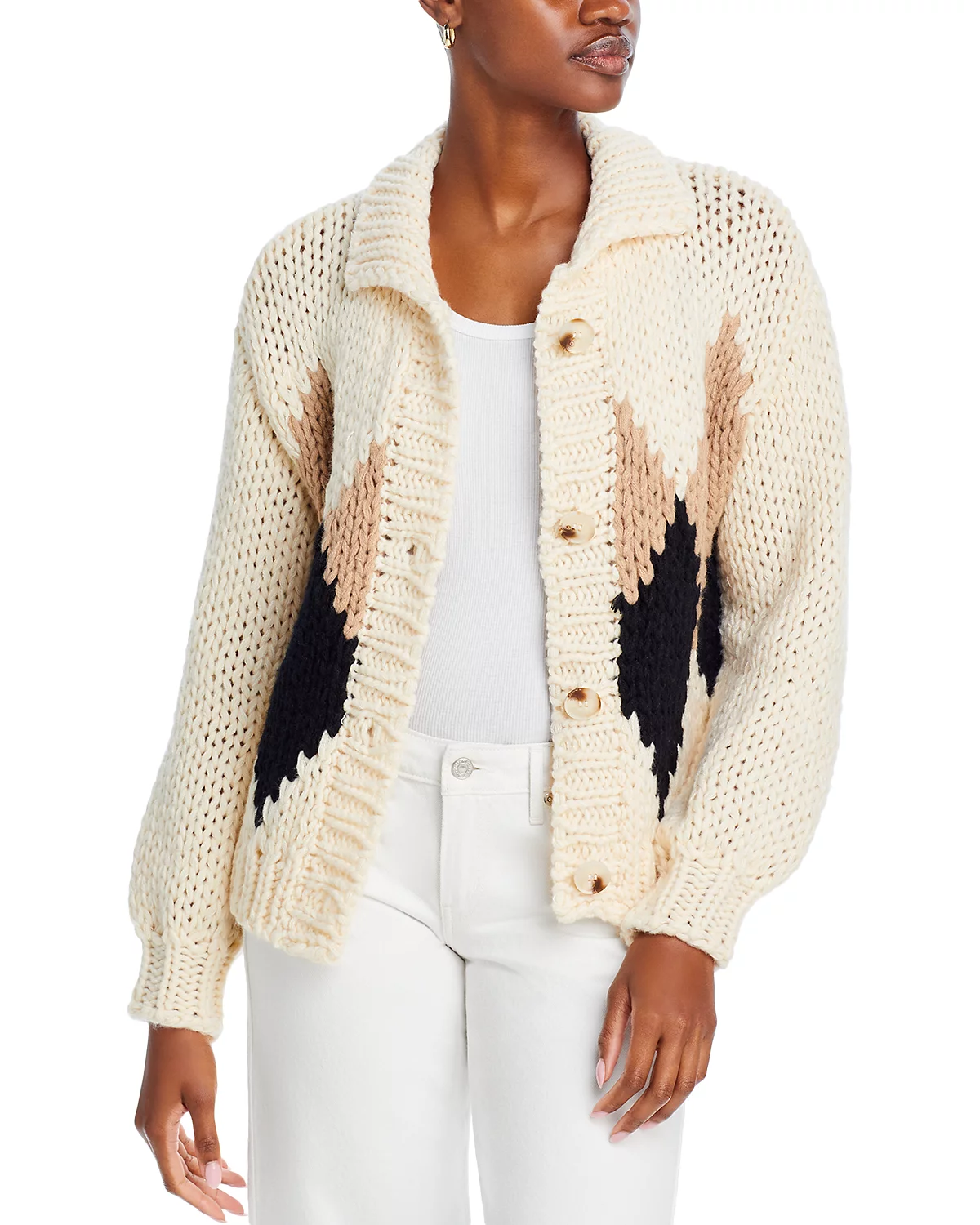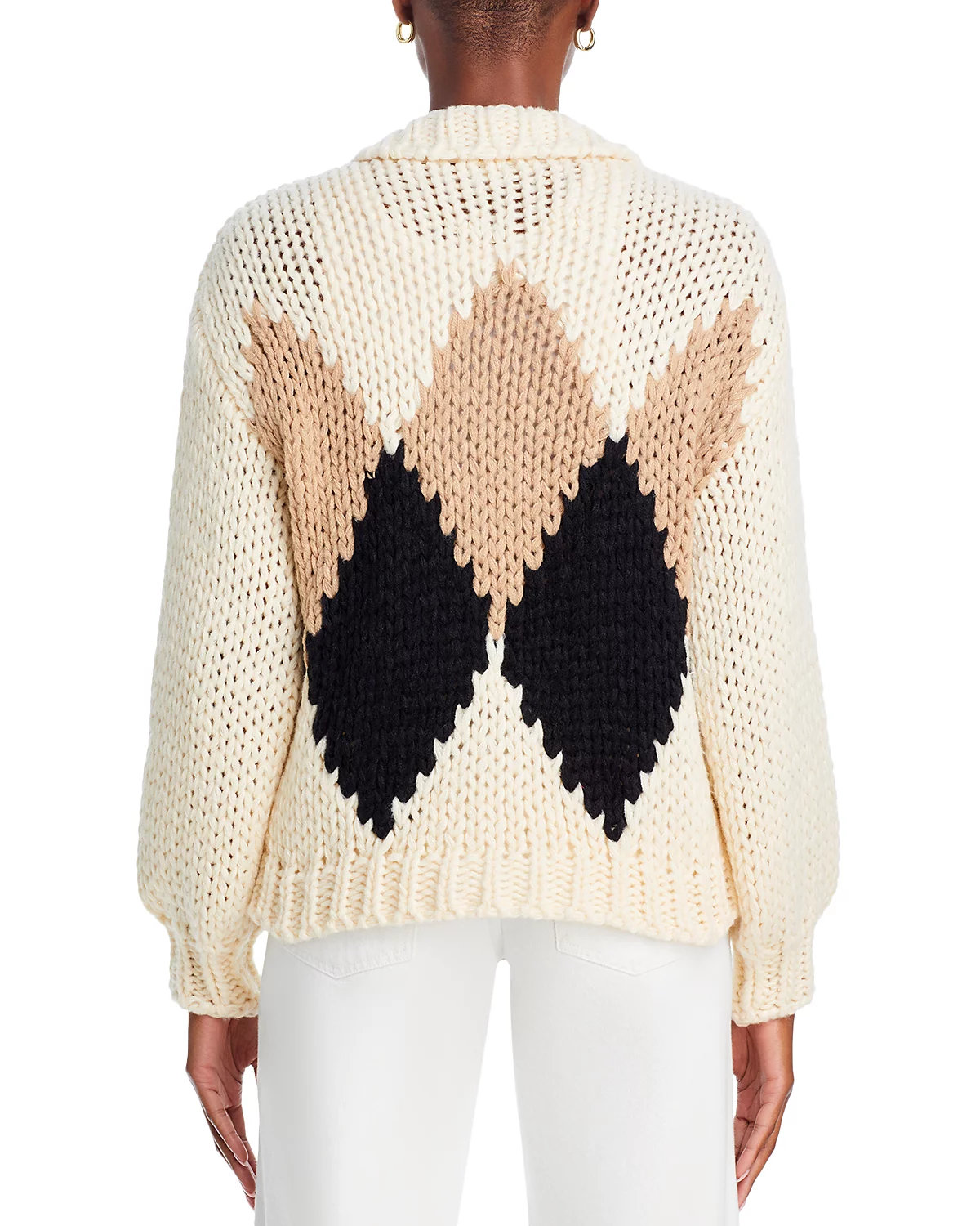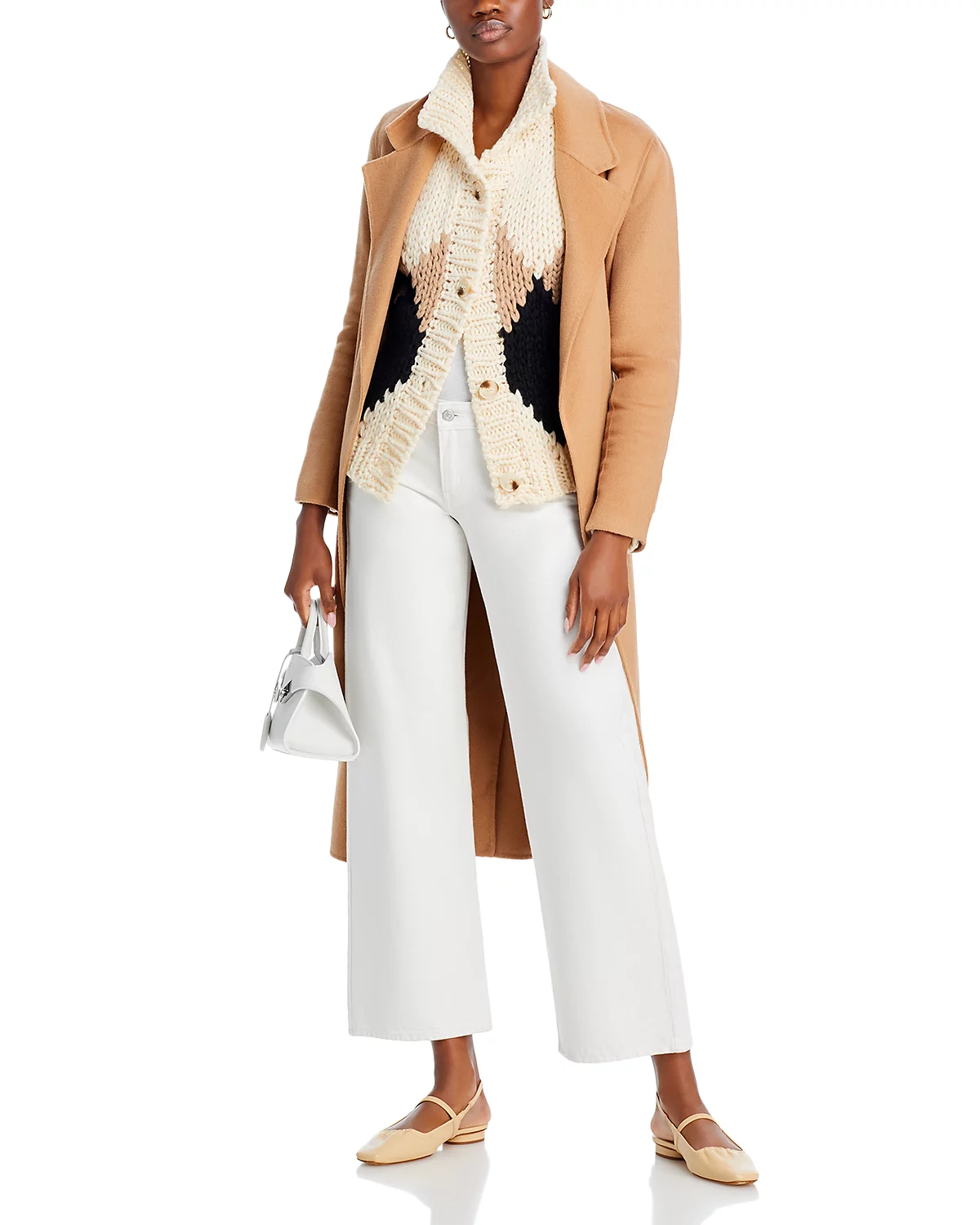 Fabric: Heavyweight soft knit Collared neck Button placket Shell: 100% polyester Dry clean Long sleeves with dropped shoulders